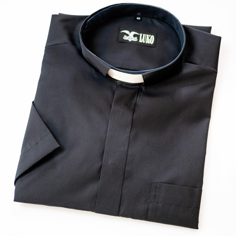Košeľa kňazská s krátkym rukávom, čierna